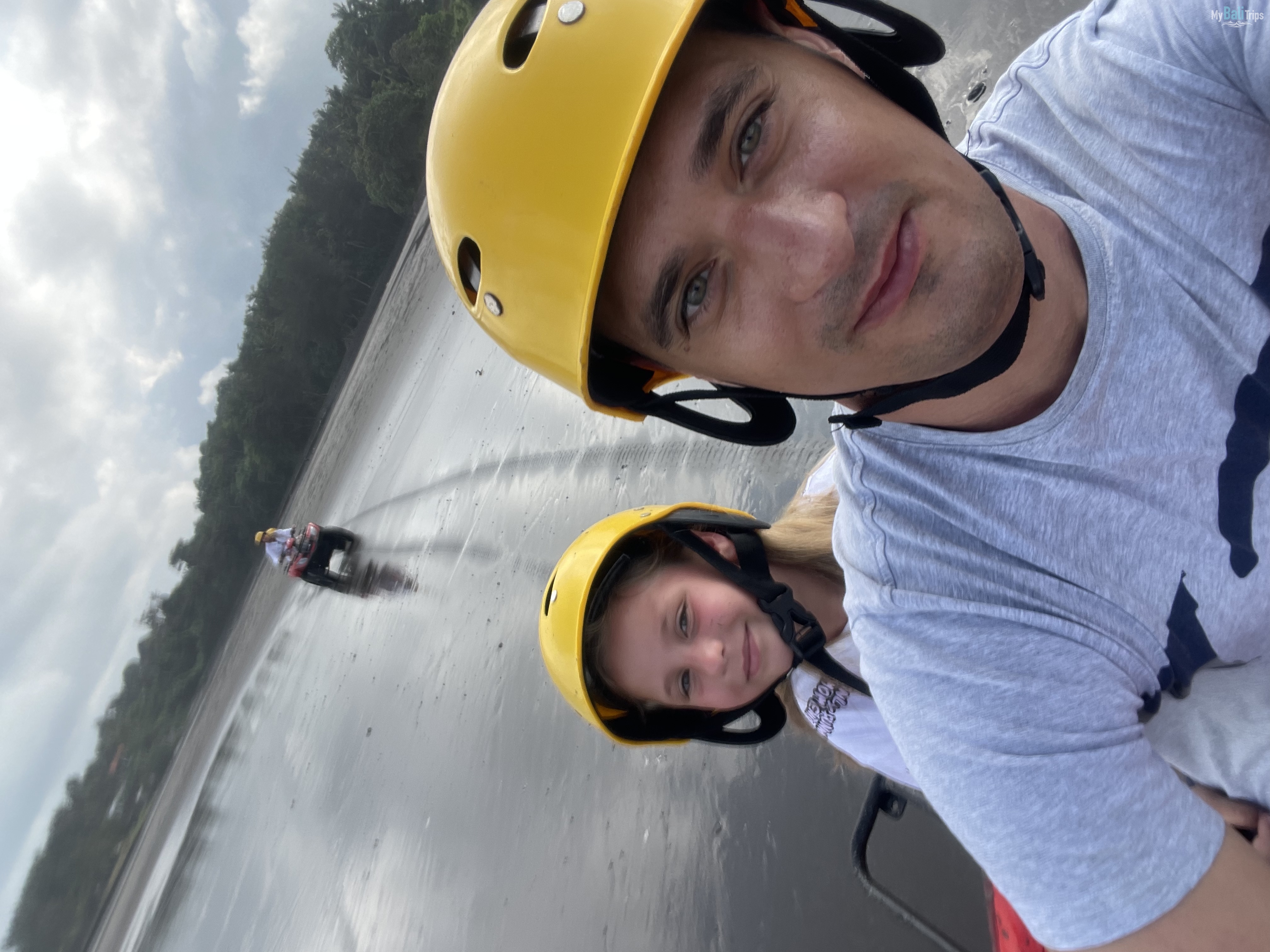 After the main track, you will have lunch in a small cafe in the jungle by the river, take a photo on a swing and other interesting locations. For young riders, the cafe has a children's trampoline and a cable car.