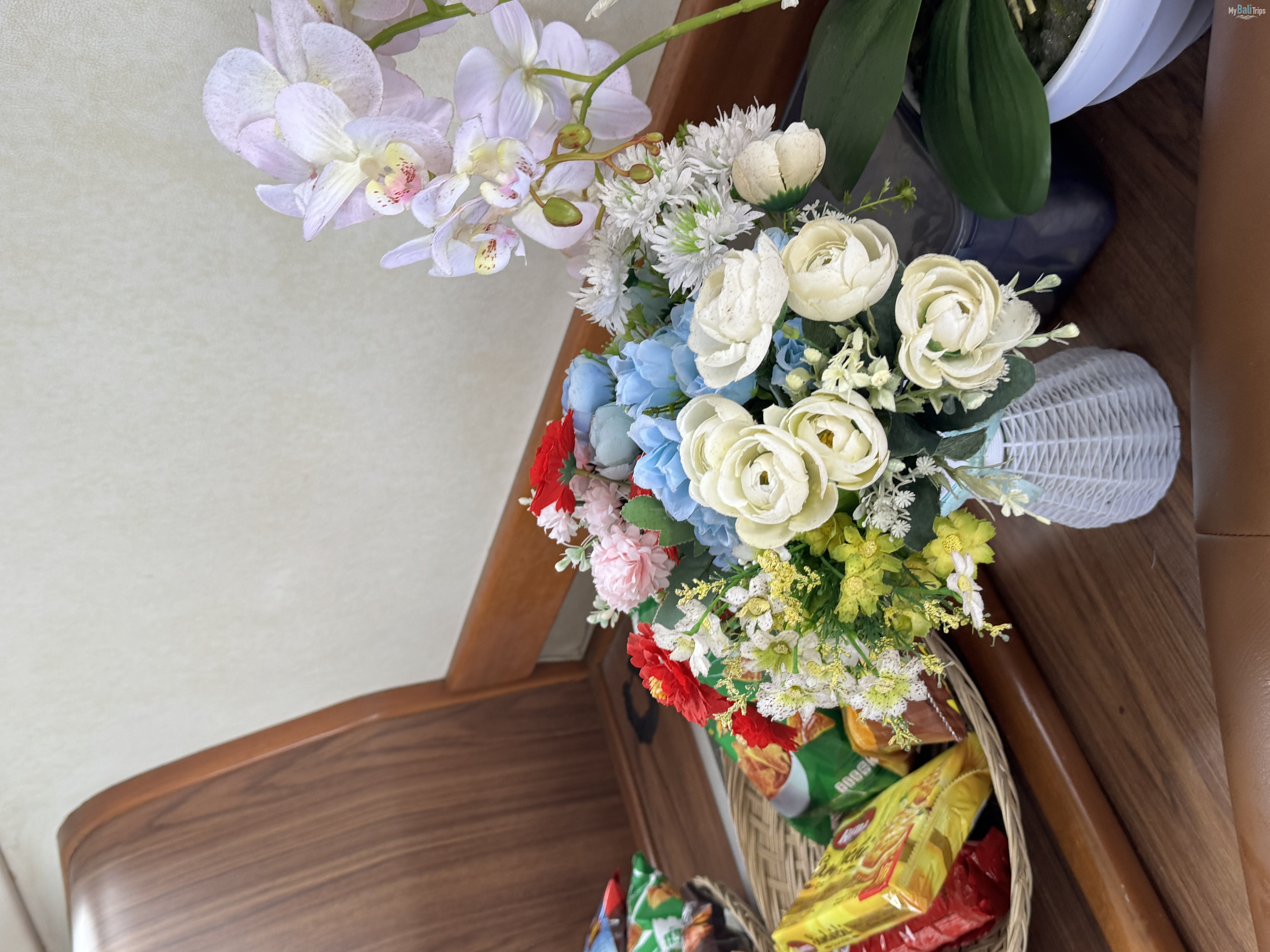 The evening cruise starts at 4 p.m. and ends around 8 p.m. The route goes along the East coast of Nusa Dua and Sanur beaches. A romantic evening aboard the yacht begins with a glass of chilled champagne and relaxing music. If you would like, we can make exquisite canapés.