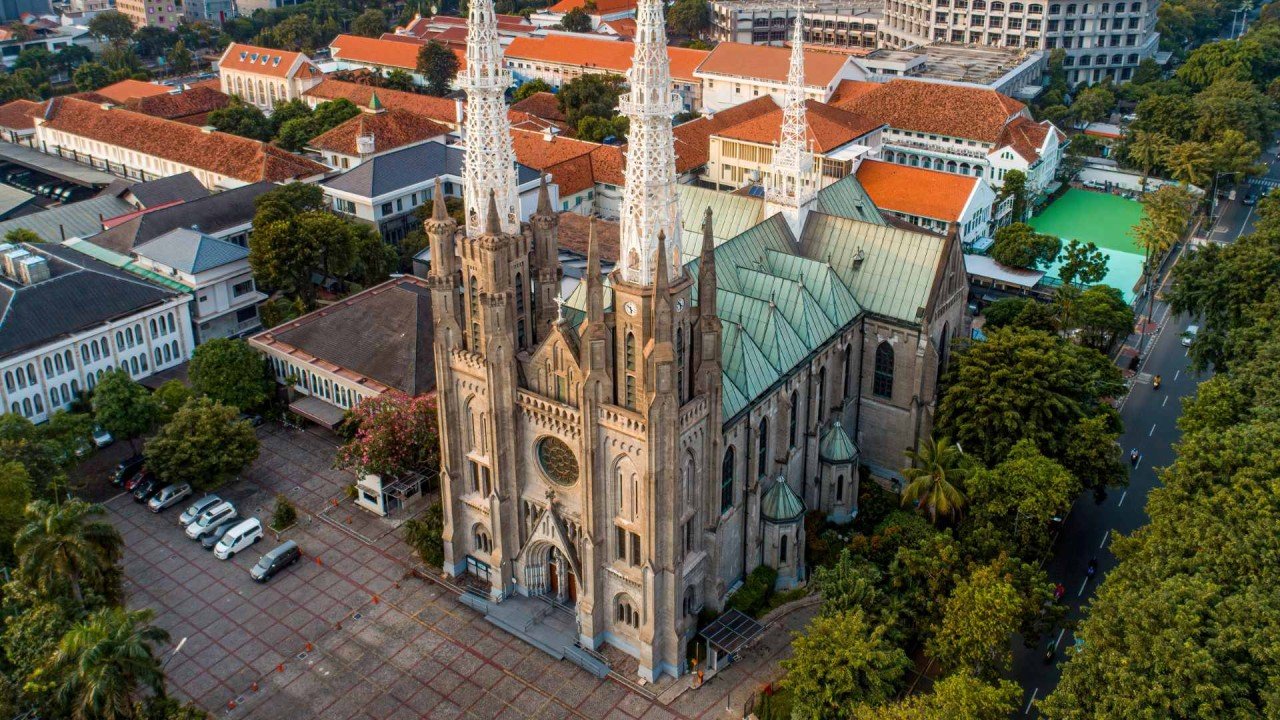 Poursuivez avec la majestueuse mosquée Istiqlal, la plus grande d’Asie du Sud-Est. Elle peut accueillir jusqu’à 120 000 personnes et constitue un remarquable exemple de l’alliance de l’architecture européenne et indonésienne. En face de la mosquée se trouve la cathédrale de Jakarta, symbole de la diversité religieuse de la ville et premier édifice catholique de la capitale.
