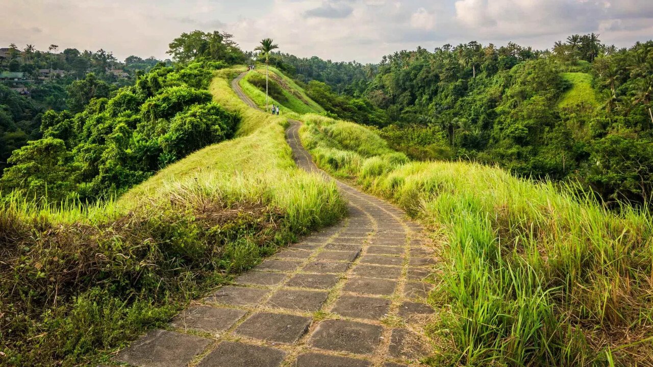Ce sentier est l’un des itinéraires les plus populaires d’Ubud, adapté même à ceux qui n’aiment pas les longues marches. Il commence près du centre—au temple Gunung Lebah, situé à la confluence de deux rivières : la Wos et la Campuhan. Dès les premiers mètres, de magnifiques vues sur les collines et les vallées fluviales s’offrent à vous, la route elle-même suivant une large crête.