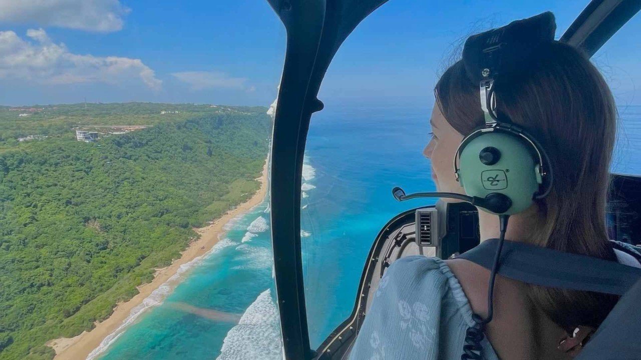 C’est la meilleure option pour ceux qui recherchent le moyen le plus rapide d’atteindre l’île et des sensations fortes au maximum. Le vol ne dure que 20 minutes dans une cabine spacieuse et climatisée, sans autres passagers. Vous profiterez de vues à couper le souffle sur Bali et Nusa Penida depuis une perspective aérienne. L’hélicoptère décolle de la zone d’Ungasan, sur la péninsule de Bukit. Vous pouvez choisir d’atterrir au port de la plage de Sampalan ou directement près de la célèbre falaise en forme de dinosaure - Kelingking.