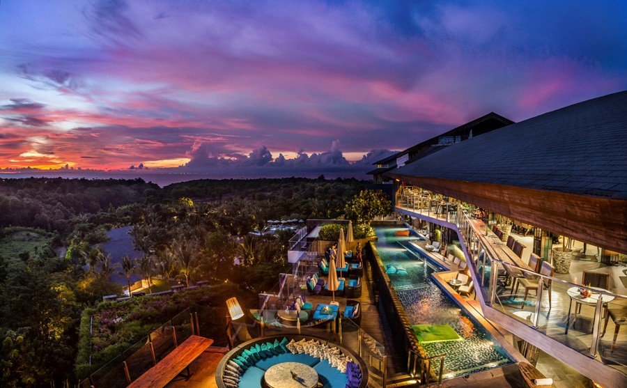 Unique Rooftop Bar : Si vous recherchez quelque chose de raffiné et d’unique, c’est l’endroit qu’il vous faut ! Le Unique Rooftop Bar bénéficie d’un emplacement spectaculaire sur le toit du RIMBA by AYANA. Les clients peuvent savourer une cuisine mexicaine moderne et internationale tout en profitant de la vue sur la baie de Jimbaran. De la musique live est proposée tous les vendredis soirs, ce qui en fait un excellent endroit pour des cocktails en soirée. Vous pouvez vous baigner dans la piscine tout en dégustant de délicieux plats et boissons ! L’endroit parfait pour dîner en admirant le célèbre coucher de soleil de Jimbaran.