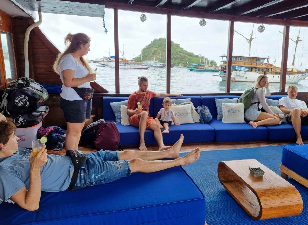 Les déplacements dans les îles Komodo se font généralement à bord de bateaux à voile traditionnels en bois, équipés de tout le nécessaire pour un séjour confortable. Ces bateaux disposent de cabines, de salles de bain, d’espaces de détente couverts et ouverts avec canapés et transats, ainsi que d’un coin repas. Un cuisinier est à bord pour préparer le petit-déjeuner, le déjeuner et le dîner des invités. Souvent, ces bateaux proposent aussi des zones “instagrammables”, une petite salle de cinéma et même un karaoké pour des soirées conviviales entre amis.