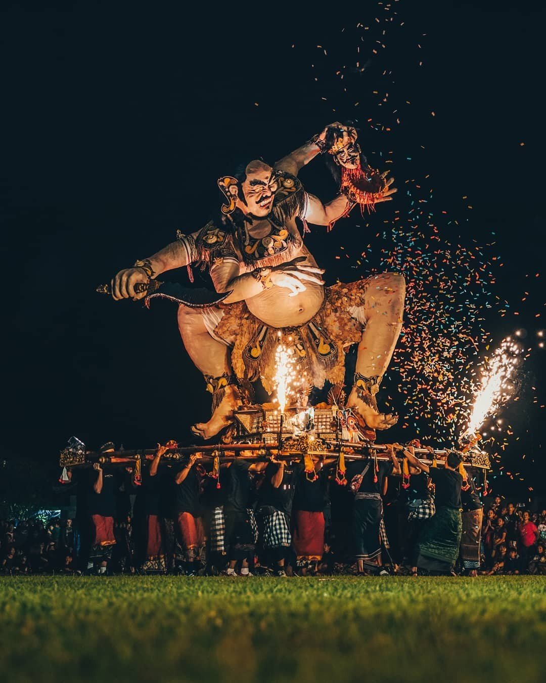 Traditionnellement, après le défilé, on a coutume de brûler les monstres. La crémation symbolise la victoire sur ses démons intérieurs et la purification des forces maléfiques. Cependant, ces dernières années, on ne les brûle plus en raison du risque d’incendie. Après les parades, les Balinais ramènent généralement les statues chez eux, les exposent dans les champs pour protéger les récoltes des oiseaux, ou les vendent à des collectionneurs. De telles processions ont lieu partout sur l’île, des grandes villes aux petits villages. Les défilés les plus spectaculaires se trouvent à Denpasar, Ubud, Sanur et Jimbaran. Mais même dans un petit village, vous pourrez voir un cortège ce jour-là, quoique moins coloré. Par conséquent, si vous vous trouvez sur l’île ce jour-là, ne manquez pas l’occasion de voir de vos propres yeux cet événement grandiose.