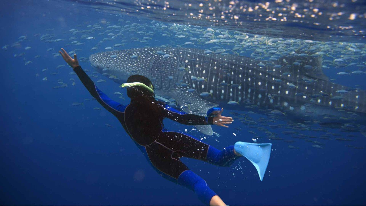 Le requin-baleine, malgré sa taille massive (trois fois plus grand qu’une raie manta), ne représente aucune menace pour l’homme. Dépourvu de dents et se nourrissant uniquement de minuscules organismes, ces doux géants sont également appelés « gentle giants ». Vivant 100 à 150 ans, ils sont malheureusement au bord de l’extinction. Pour ceux que leur taille impressionnante n’effraie pas, la voisine Sumbawa offre la possibilité de nager à leurs côtés. Pas besoin de plongée bouteille ; un simple masque et tuba permet d’observer les mouvements majestueux et lents de ces êtres colossaux. Vous pouvez réserver ici votre sortie snorkeling avec les requins-baleines.