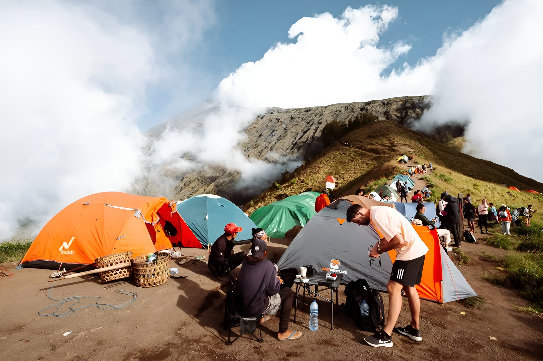 17:00 - arrivée au cratère RIM Sembulan sur le site de camping, dîner et nuit sous tente.