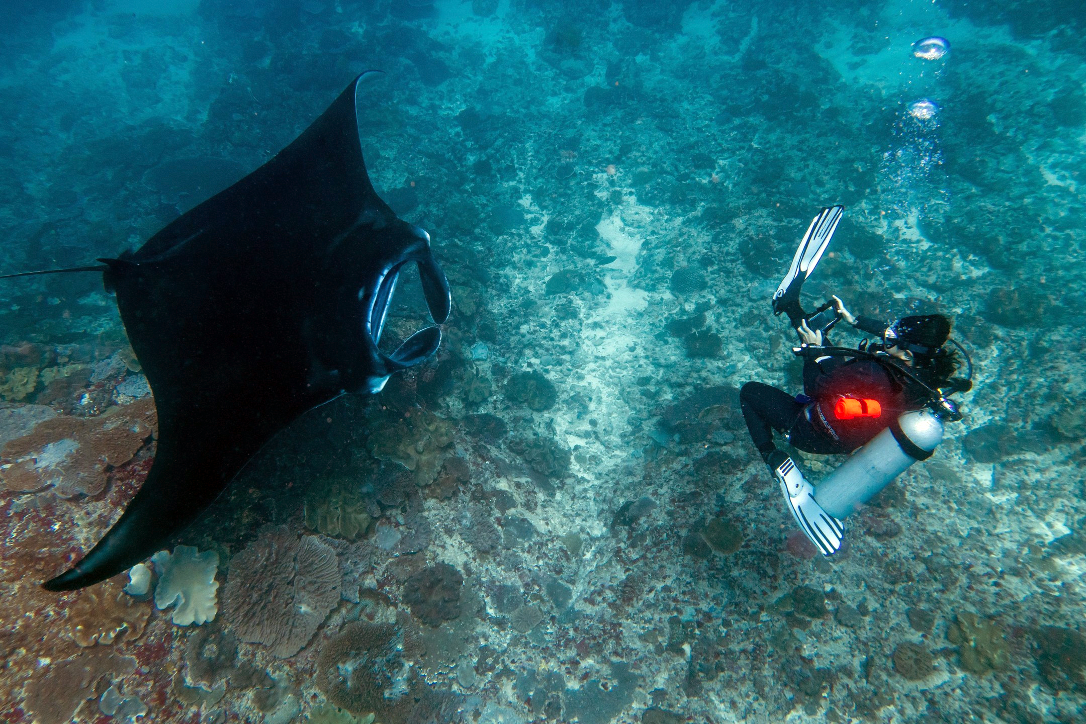 La première plongée aura lieu à Manta Point. Vous pourrez y observer les mouvements gracieux des raies manta géantes. Elles nagent si près de la surface que, avec un peu de chance, vous pourrez même les toucher.