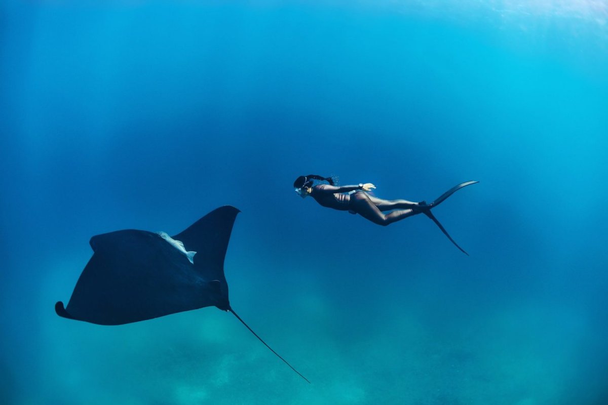 Le paysage sous-marin de la baie mêle fonds rocheux et massifs coralliens à une profondeur de 5 à 12 mètres. Le point fort du site est la « danse » de ces géants dont l'envergure peut atteindre 5 mètres. Les mantas sont tout à fait paisibles et font souvent preuve de curiosité, glissant à quelques centimètres seulement des nageurs. L'eau affiche une teinte turquoise intense, avec une visibilité variant de 10 à 20 mètres. Observer ces « diables de mer » planer avec grâce dans l'océan crée une sensation d'irréel et reste l'un des souvenirs les plus marquants de l'archipel.