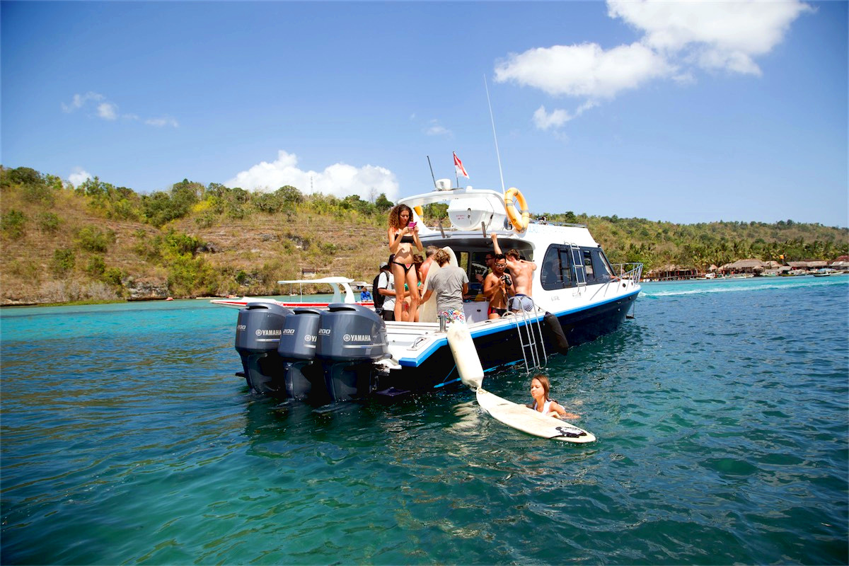La croisière du matin commence généralement à 10 h et se termine vers 13 h. À vous de décider comment profiter de votre temps : snorkeling parmi les poissons, bronzer sur un grand matelas flottant, pêcher ou faire du stand up paddle. Vous pouvez essayer de surfer à Serangan, le ski nautique, le wakeboard, la bouée tractée, ou simplement admirer les paysages de Bali.