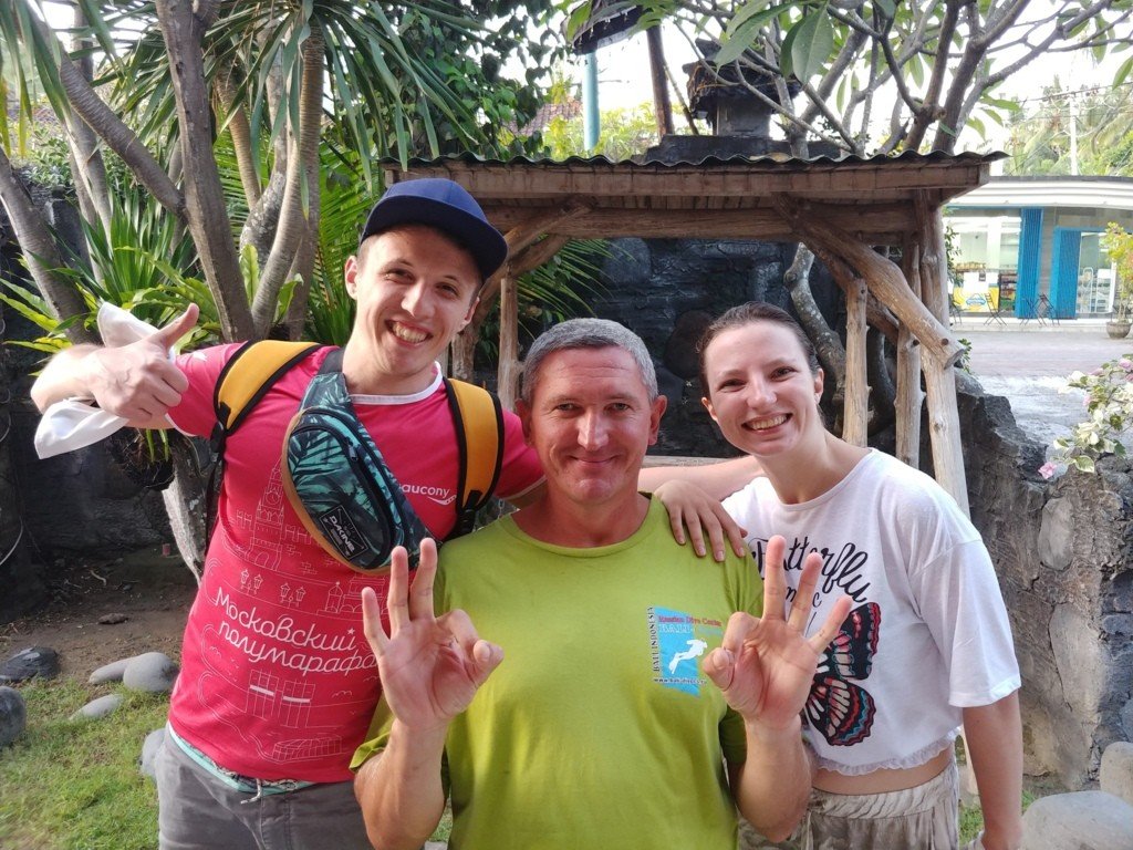 В назначенное время будьте на точке сбора в дайв-центре компании BaliClub. Если вы заказали утренний трансфер, то ко времени встречи в ваш отель или на виллу приедет водитель. Ждать машину необходимо на ресепшене отеля или у входа на виллу. Трансфер отвезет вас на северо-восток острова Бали. Вы поедете мимо рисовых террас и пляжей с вулканическим черным песком. По дороге открывается роскошный вид на вулкан Агунг.