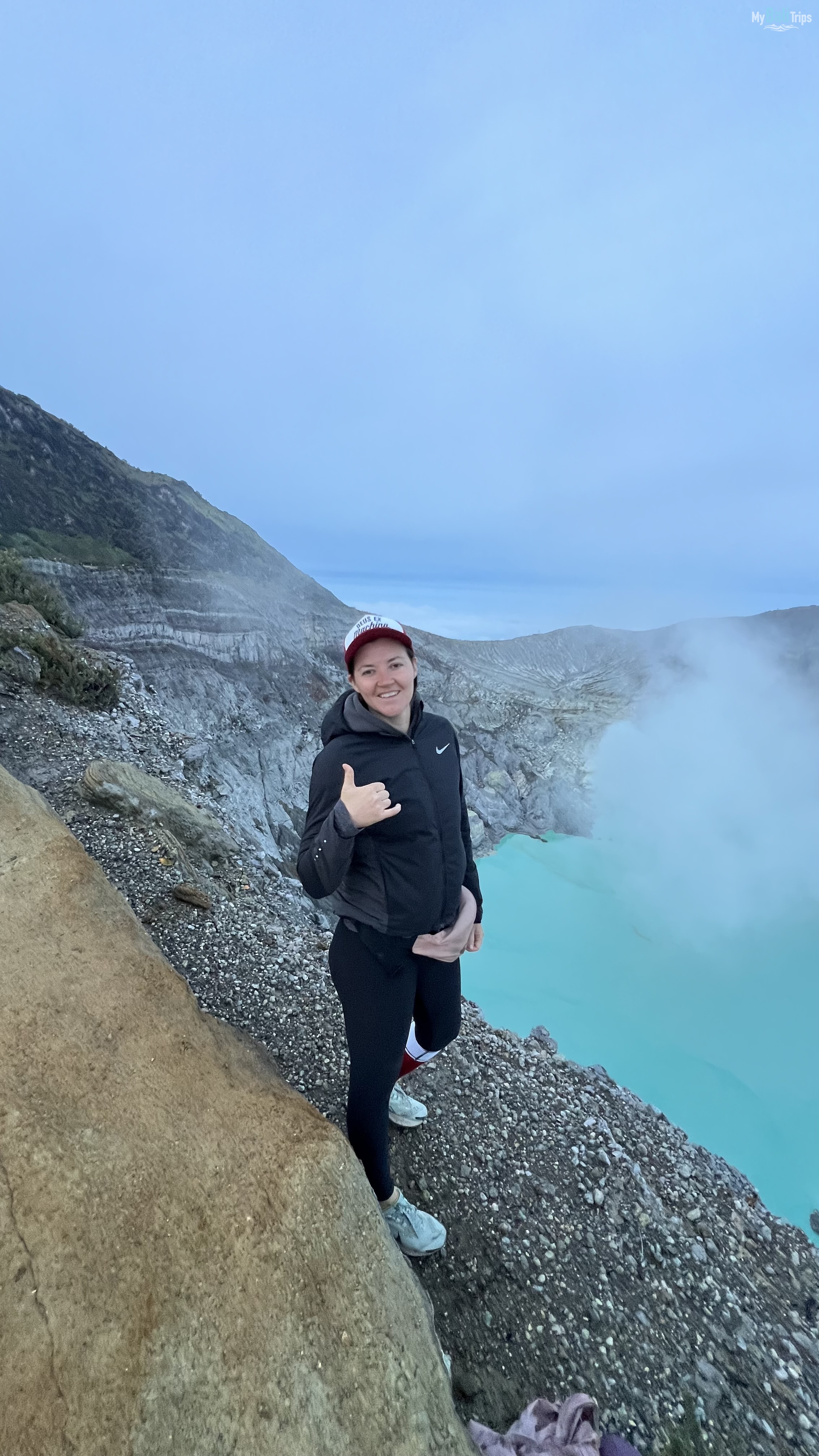 Рассвет встретите на высоте 2386 метров над уровнем моря, откуда открывается вид на кислотное озеро насыщенного бирюзового цвета и горные пейзажи в утреннем тумане.